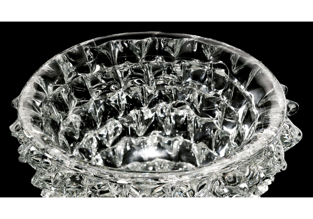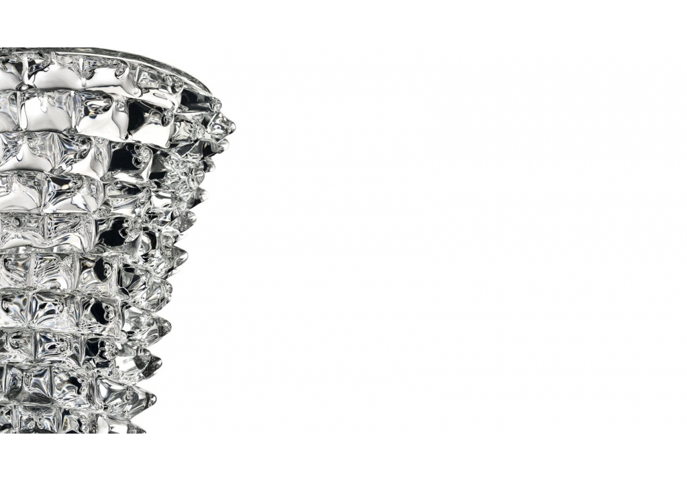 Ercole firmata da Barovier & Toso è una lampada da tavolo con corpo lampada a clessidra in cristallo veneziano trasparente, impreziosita da piccole cuspidi che creano una superficie irregolare. La sorgente luminosa adottata è di tipo LED o alogena dimmerabile. Ercole è disponibile in differenti modelli.