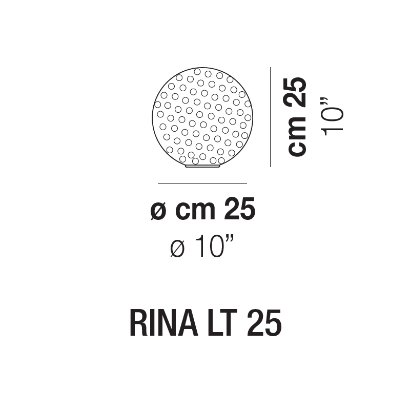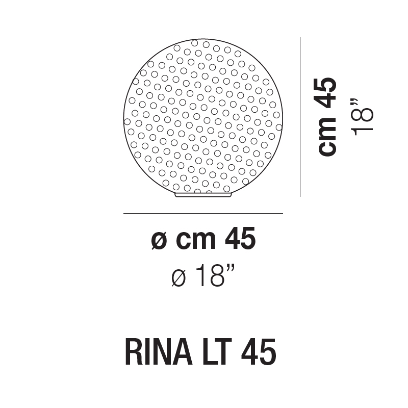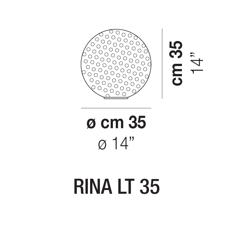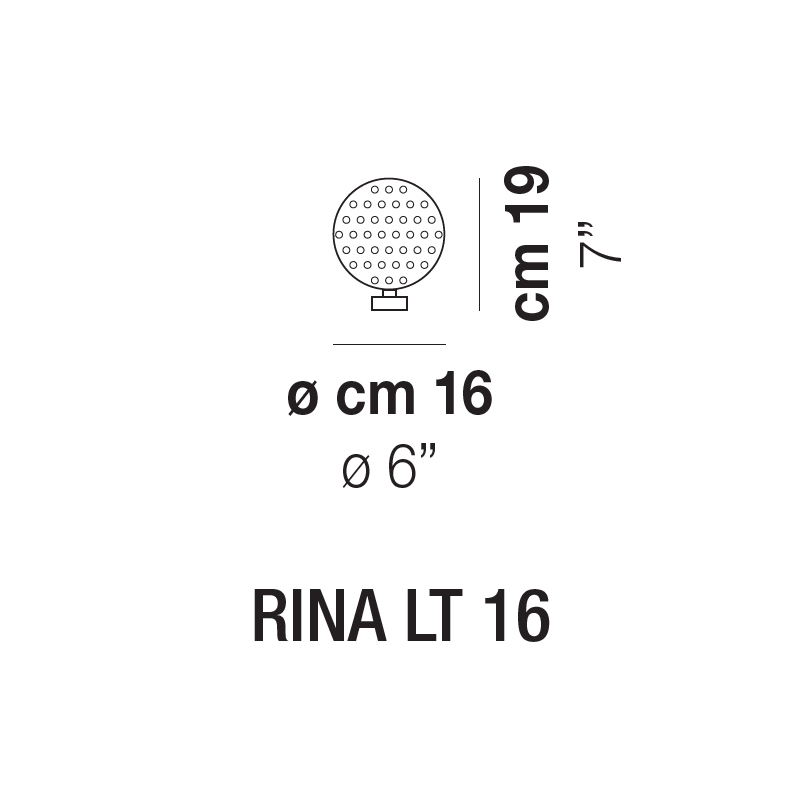 Rina firmata da Barbara Maggiolo per Vistosi è una lampada da tavolo con base circolare in metallo color cromo lucido. Il diffusore è di forma sferica in vetro color bianco murrina con supurficie porosa ed adotta una sorgente luminosa con innesto G9 o E27 di tipo LED o alogena. Rina è disponibile in differenti modelli.