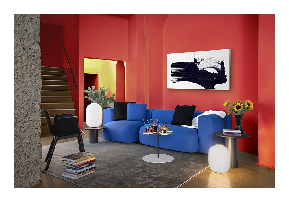Arya firmata da Giulio Cappellini & Antonio Facco per Cappellini è una lampada da tavolo realizzata con tubo e lamiera di metallo verniciati nero opaco e diffusore in vetro opaco colorato. Disponibile in diverse finiture e dimensioni.
