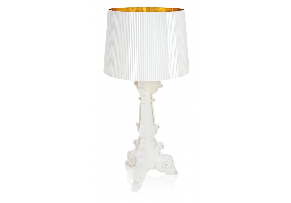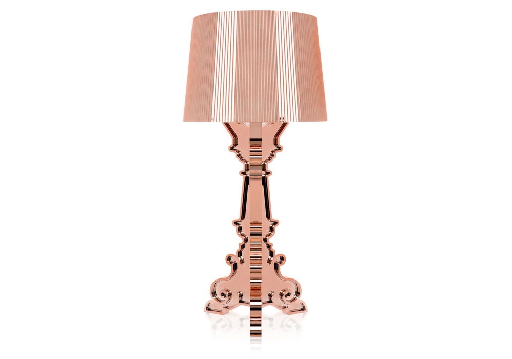 Bourgie firmata da Ferruccio Laviani per Kartell è una lampada da tavolo dimmerabile realizzata in policarbonato 2.0 da materia prima rinnovabile trasparente, colorato in massa o metallizzato.