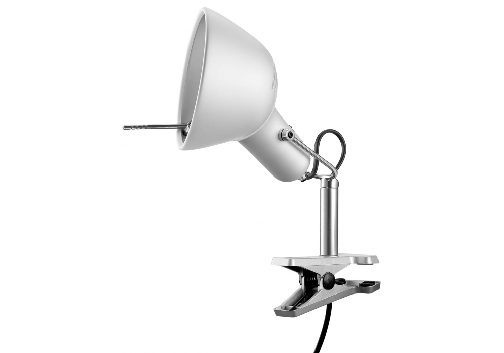 Naomi Pinza firmata da Yaacov Kaufman per Lumina è una lampada da tavolo con pinza e struttura in lega di alluminio ed acciaio in un'unica finitura alluminio anodizzato. Il diffusore è orientabile verticalmente di 180° e rotabile di 360° ed adotta una sorgente luminosa LED switch On/Off.