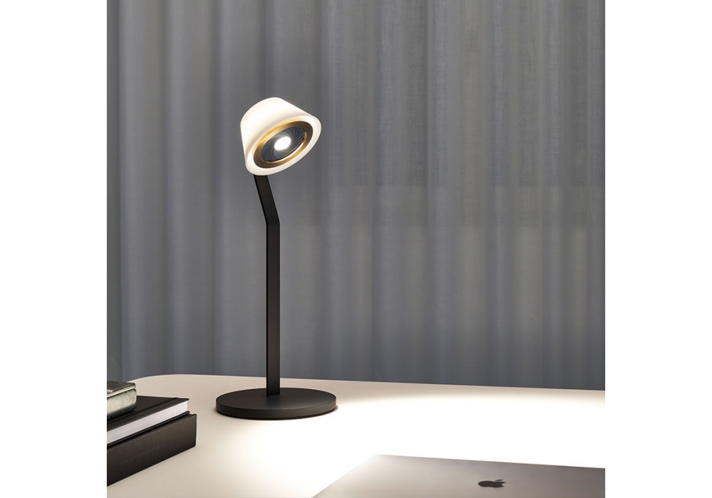 Lei firmata da Occhio è una lampada da tavolo a LED, dimmerabile tramite pulsante sensore posteriore, incl. alimentatore a spina. Realizzata in alluminio, acciaio cromato, verniciato o anodizzato, plastica, vetro, acciaio inox e plastica ottica. Disponibile in diverse finiture.