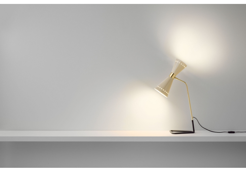 Megafono firmata e prodotta da Stilnovo è una lampada LED da tavolo con corpo lampada in ottone galvanizzato color oro in due finiture: oro-nero e oro-avorio. Megafono è provvista di doppio diffusore in metallo con sorgente luminosa a LED.