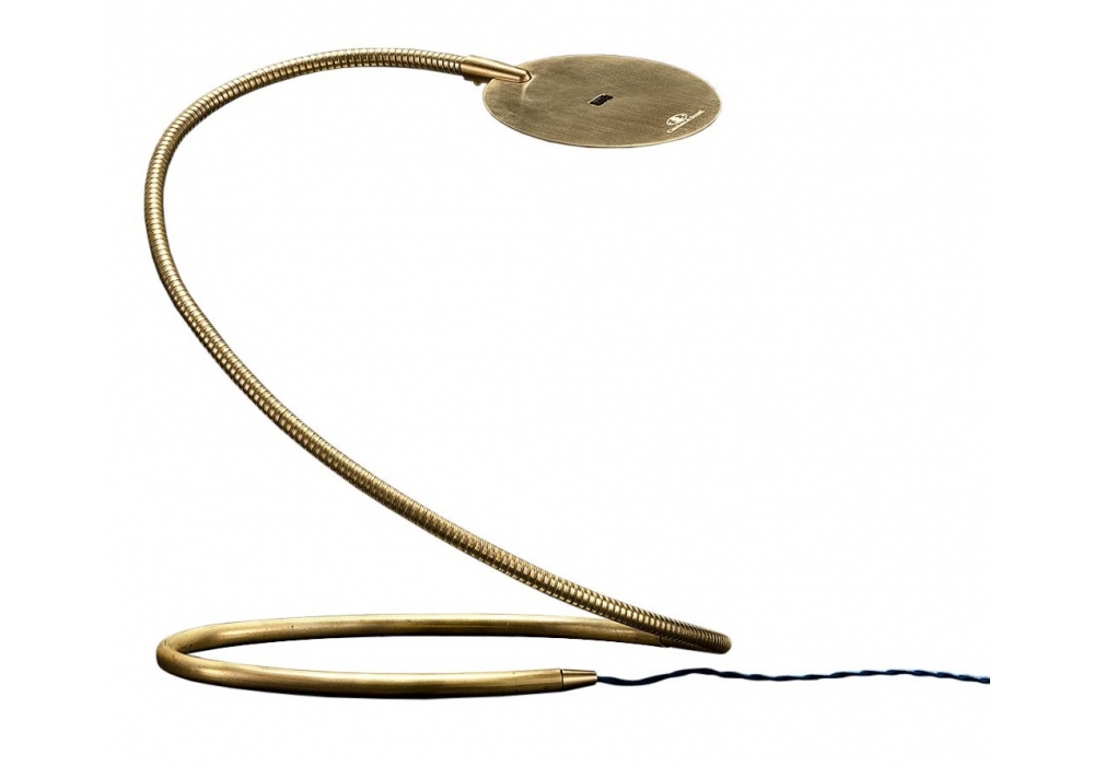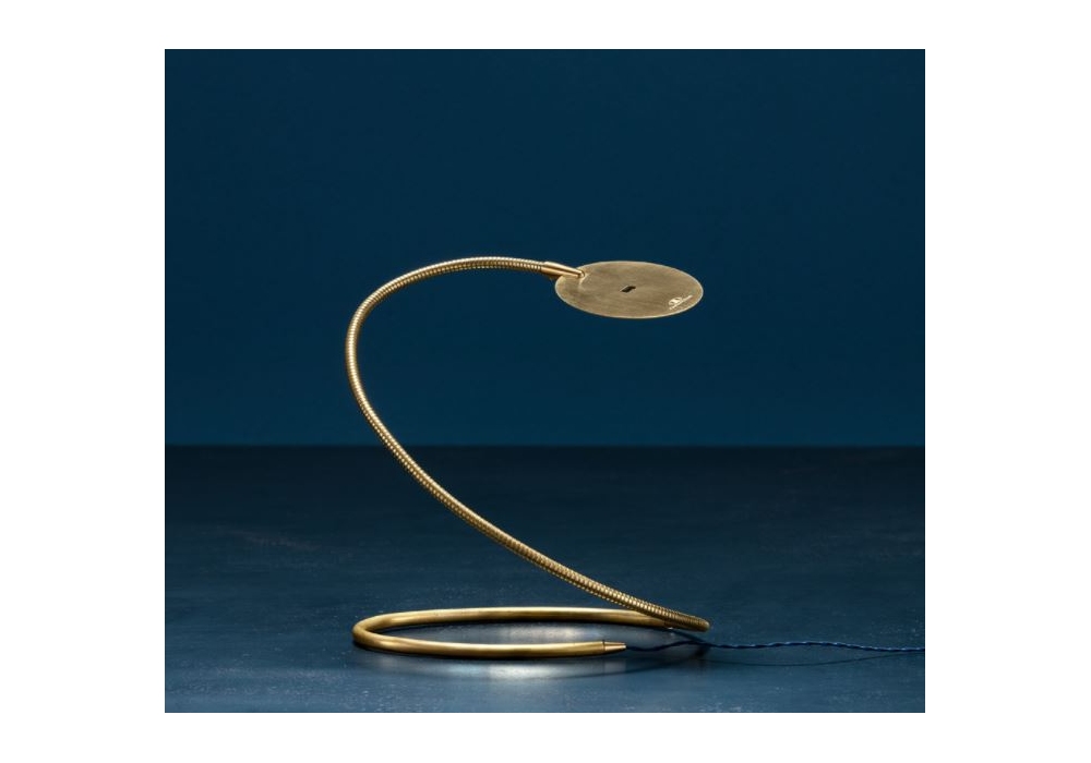 Herem T firmata da Enzo Catellani per Catellani&Smith è una lampada da tavolo USB, con supporto, flex e schermo ottone. La lampada è dotata di LED board e tecnologia touch-less dimmer.