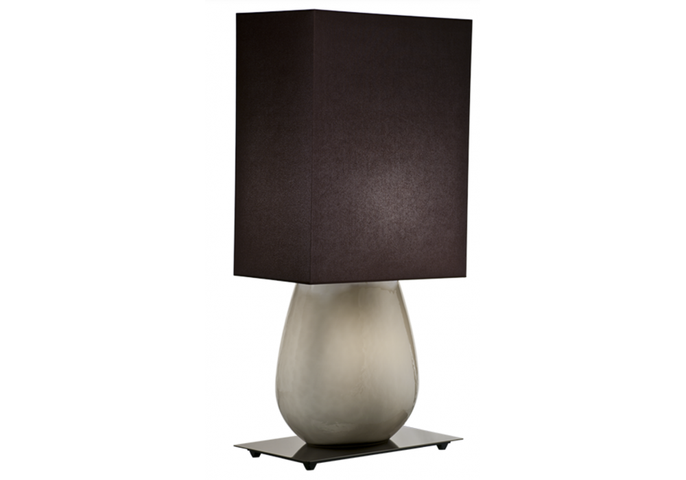 Sultani firmata da Leonardo Ranucci per Venini è una lampada da tavolo con paralume in tessuto marrone e struttura in vetro opalino soffiato a mano, in diverse finiture. La lampada è disponibile in due dimensioni.