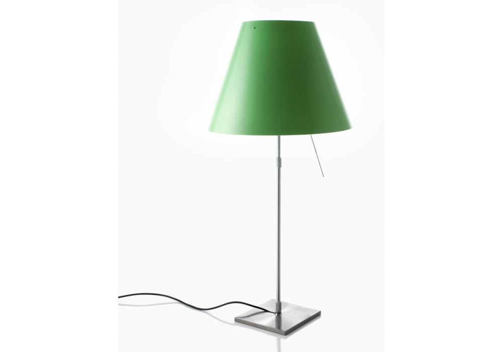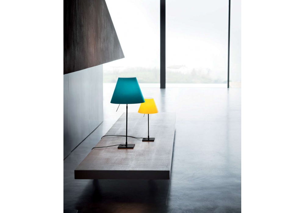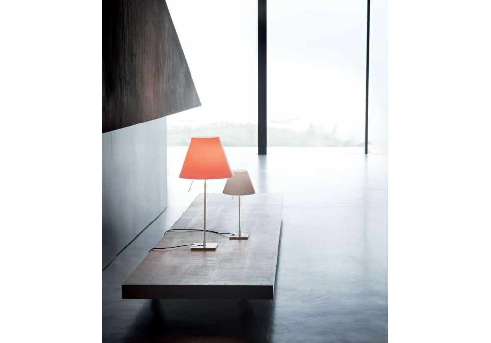 Costanzina firmata da Paolo Rizzatto per Luceplan è una lampada da tavolo con struttura in alluminio, paralume intercambiabile in policarbonato serigrafato. Disponibile in diverse finiture.