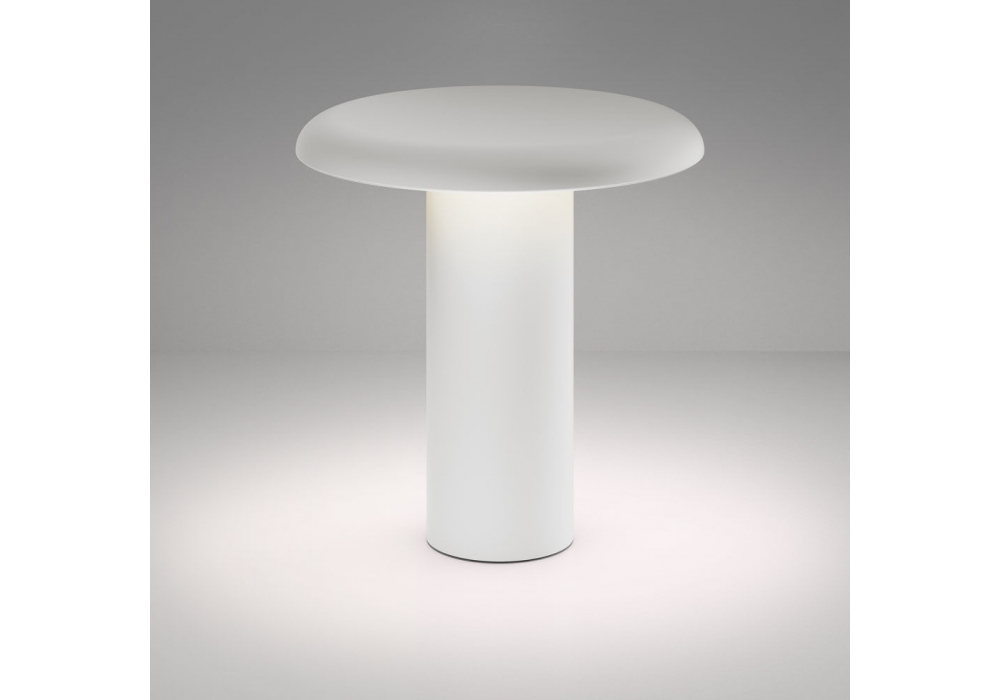 Takku firmata da Foster + Partners per Artemide è una lampada da tavolo portatile con base cilindrica e diffusore a fungo realizzata interamente in alluminio anodizzato. Il diffusore è in materiale plastico ed allogga una sorgente luminosa di tipo LED con sistema di dimmerabilità a tre step. Collocato alla base c'è un ingresso USB type C per la ricarica. Takku è disponibile in differenti finiture.