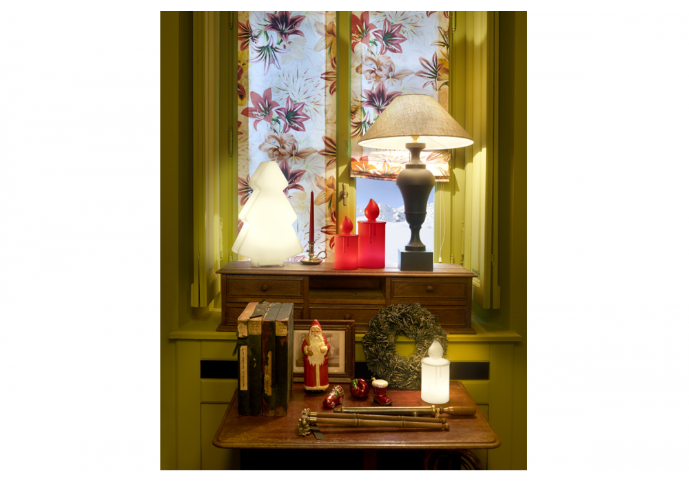 Fiammetta firmata da Alberto Ghirardello per Slide è una lampada da tavolo a forma di candela ideale come centrotavola. Disponibile in differenti versioni e finiture