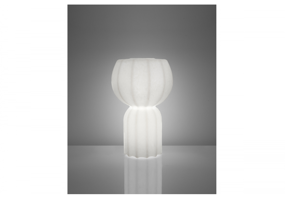 Pupa firmata da Lorenza Bozzoli per Slide è una lampada da tavolo che si ispira di nuovo alle forme dei fiori. La texture ricorda l’antica carta giapponese.