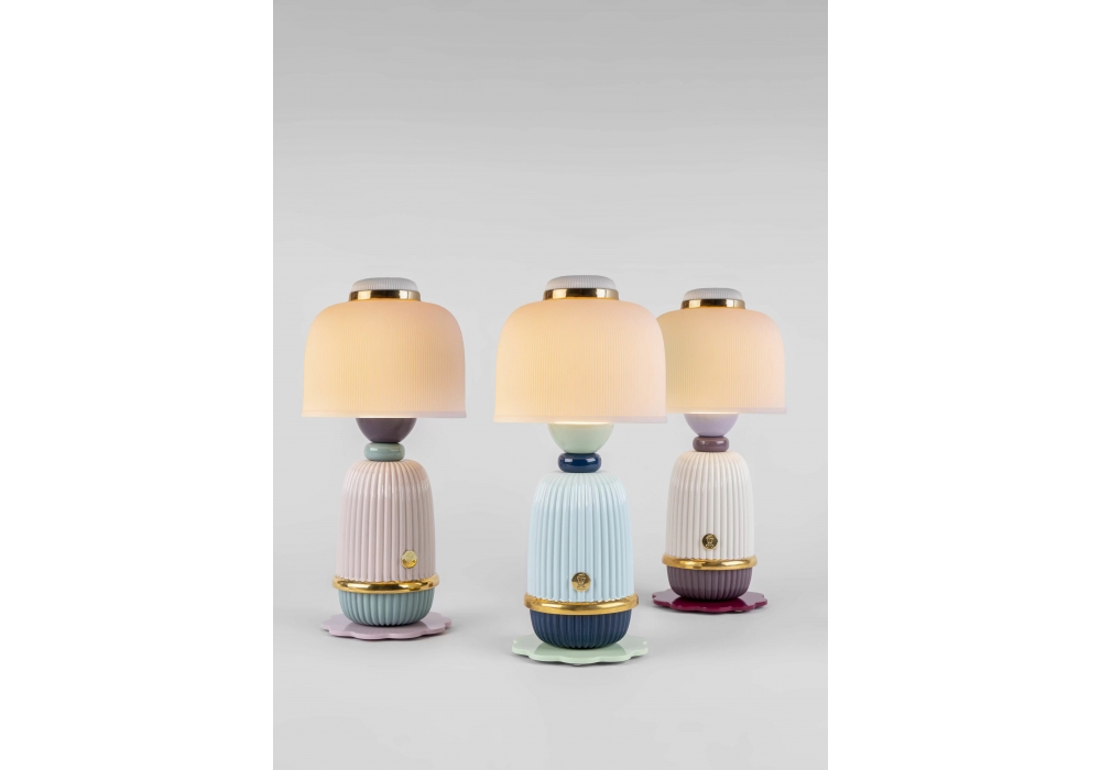 Kokeshi firmata da Robert Schnyder per Lladró è una lampada da tavolo portatile a batteria. Il corpo lampada è costituito da porcellana lucida ed è disponibile in differenti finiture, mentre il paralume è di forma a tulipano in porcellana opaca.