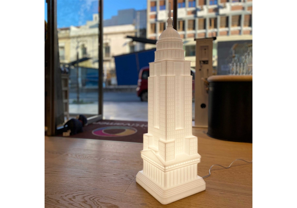 Empire Translucent firmata da Studio Job per Qeeboo è una lampada da tavolo portatile e ricaricabile interamente realizzata in polietilene traslucido.