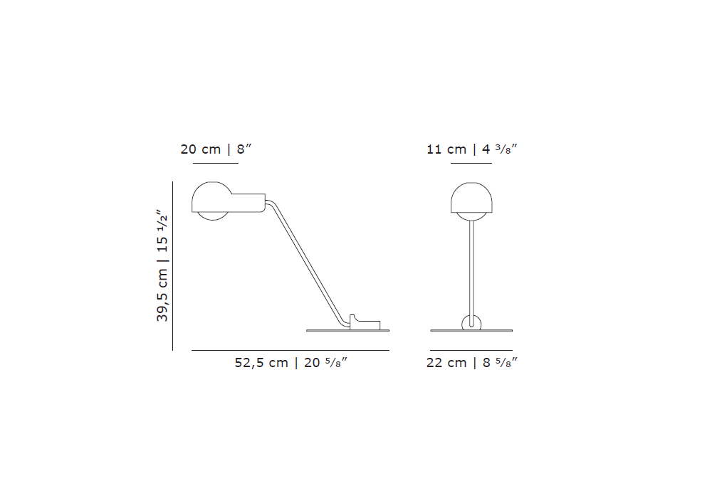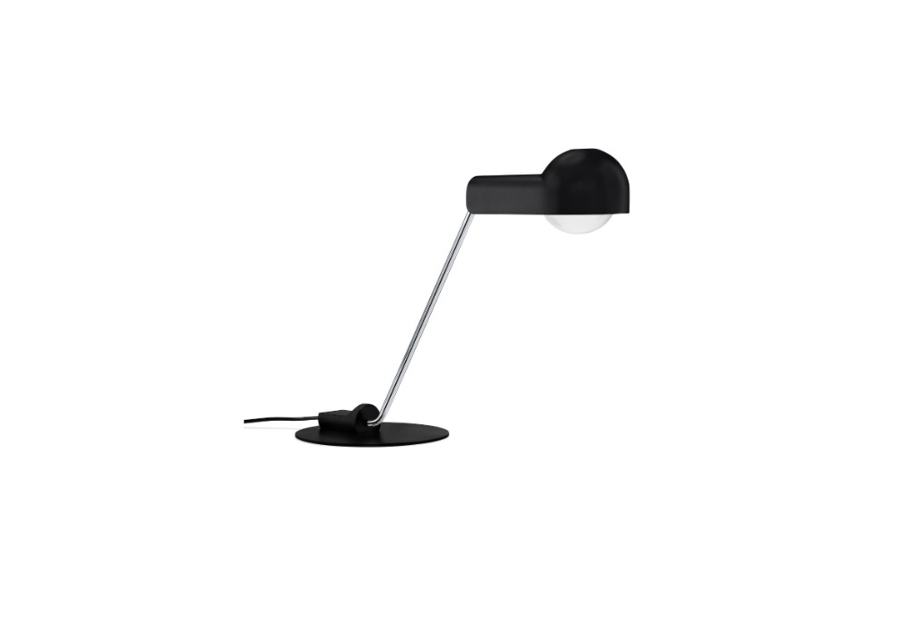 Domo Table firmata da Joe Colombo per Karakter è una lampada da tavolo realizzata in ottone con superficie spazzolata e vernice trasparente, acciaio con rivestimento a polvere nera o acciaio con testa della lampada e base verniciati a polvere e stelo cromato. Disponibile in diverse finiture.