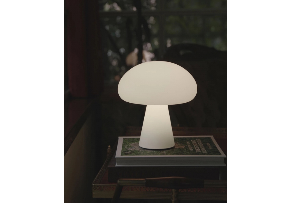 Obello firmata da Bill Curry per Gubi è una lampada ricaricabile che può essere facilmente spostata tra l'interno e l'esterno. Con una ricarica completa in quattro ore e mezza, fornendo fino a 40 ore di luce. È realizzata in vetro soffiato a bocca satinato.