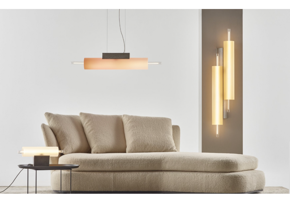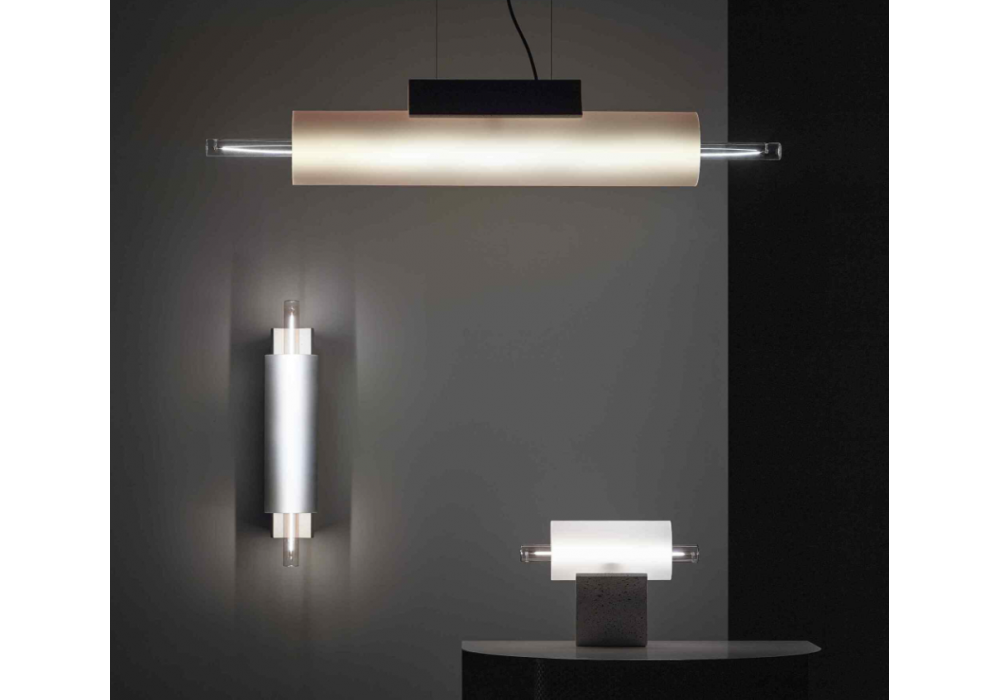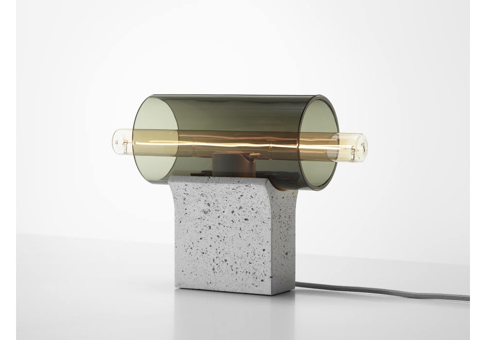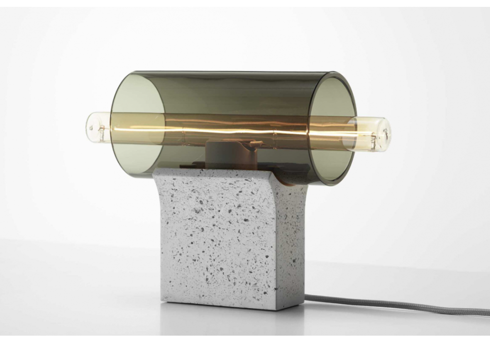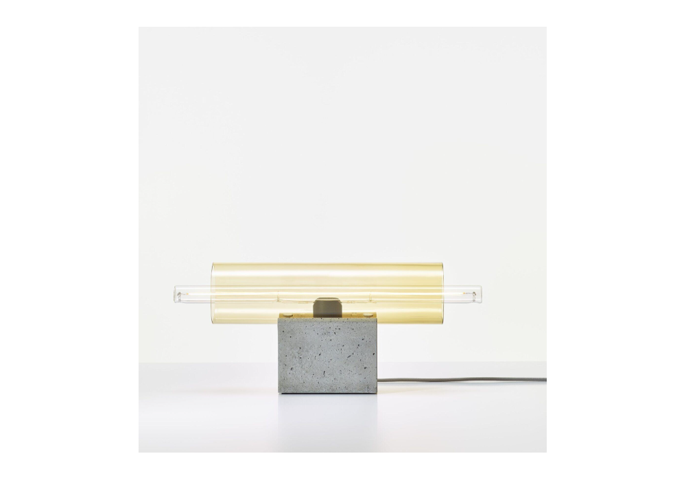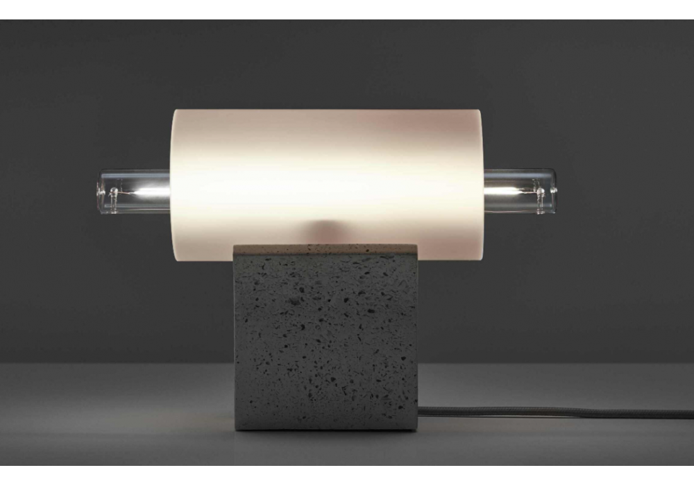 Overlay firmata da Lucie Koldova per Brokis è una lampada da tavolo con base quadrangolare in cemento ultraperformante. Il diffusore è di forma tubolare in vetro soffiato con superficie lucida o acidata e scherma una sorgente luminosa di tipo LED dimmerabile alimentata da un cavo rivestito in fibra tessile. Overlay è disponibile in differenti finiture.