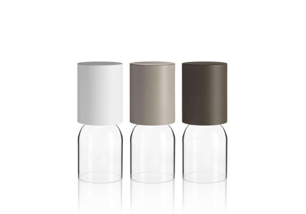 Nui Mini firmata da Meneghello Paolelli per Luceplan è una lampada da tavolo portatile con struttura in acciaio verniciato e vetro trasparente. É dotata di cavetto USB/USB-C. E' possibile acquistare il caricabatterie USB come accessorio. Disponiible in diverse finiture. Adatta anche per esterno.