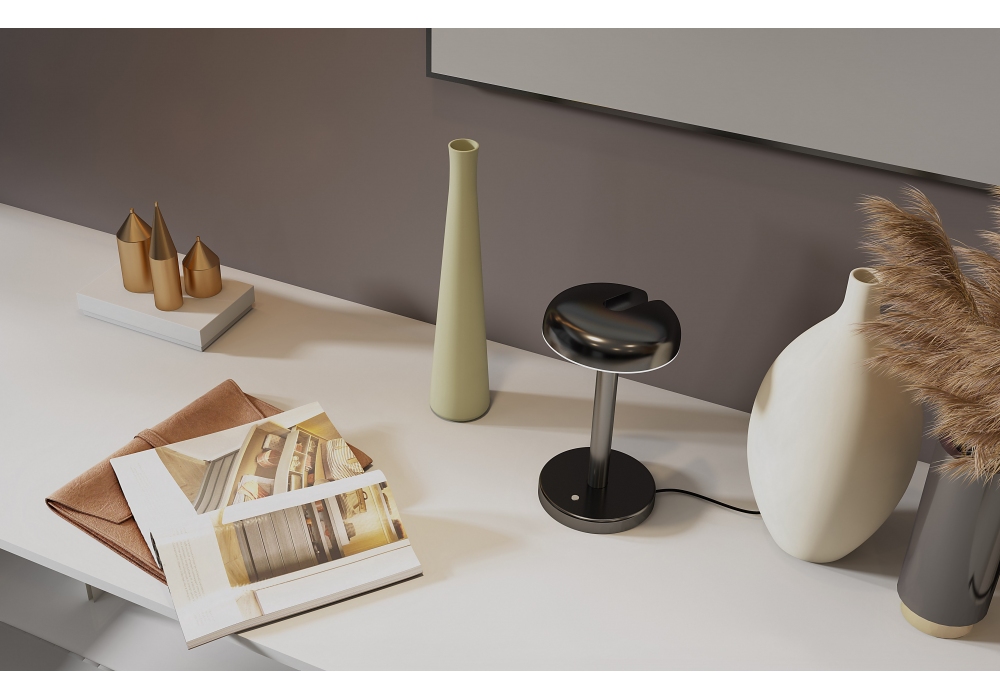 Cabriolette firmata da Studio Natural per Martinelli Luce è una lampada da tavolo con base circolare interamente strutturata in alluminio verniciato. Il diffusore è snodabile con movimento verticale e scherma una sorgente luminosa di tipo LED. Cabriolette è disponibile in differenti finiture ed in versione portatile ricaricabile o con cavo.