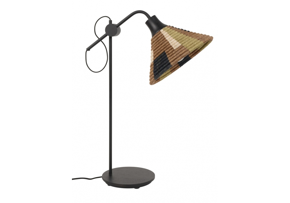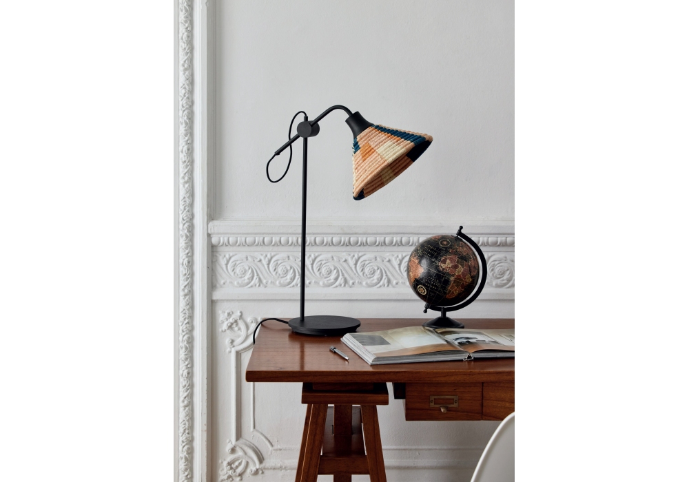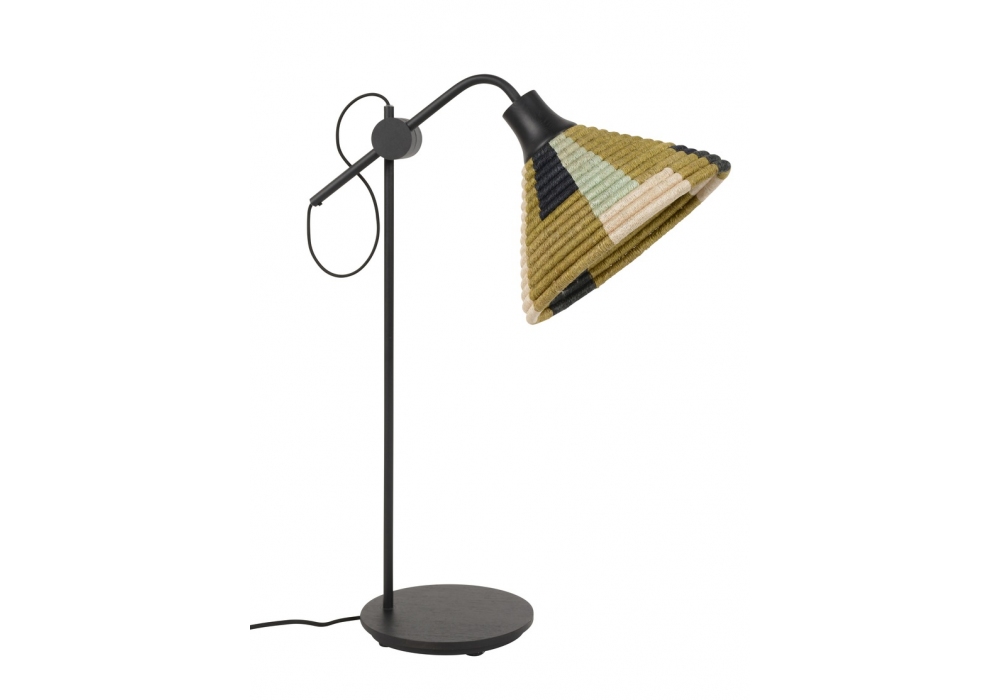 Parrot firmata da Jette Scheib per Forestier è una lampada da tavolo con diffusore in legno rivestito da un cordino tessile in velluto e cotone e base in metallo nero. Disponibile in diverse finiture.