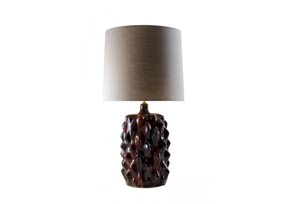 Baobab firmata e prodotta da Porta Romana è una lampada da tavolo strutturata in ceramica smaltata e metallo. Il paralume è in tessuto e scherma una sorgente luminosa con innesto E27 di tipo LED alimentata da un cavo in fibra tessile. Baobab è disponibile in differenti finiture per ogni singolo elemento.