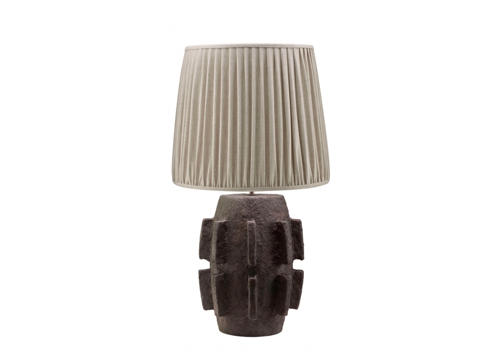 Barbara firmata e prodotta da Porta Romana è una lampada da tavolo ispirata alle sculture di Barbara Hepworth strutturata in materiale composito verniciato. Il paralume è in tessuto e scherma una sorgente luminosa con innesto E27 di tipo LED alimentata da un cavo in fibra tessile. Baobab è disponibile in differenti finiture per ogni singolo elemento.