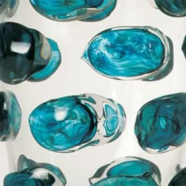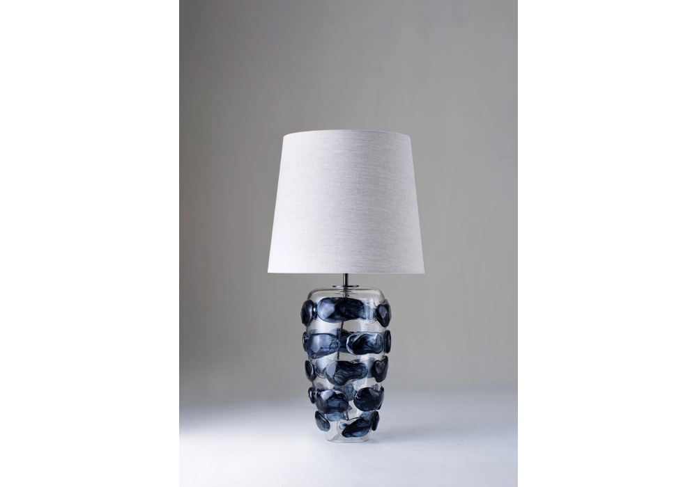 Blob firmata e prodotta da Porta Romana è una lampada da tavolo strutturata in vetro soffiato con applicazioni modellate sempre in vetro e particolari in metallo placcato. Il paralume è in tessuto e scherma una sorgente luminosa con innesto E27 di tipo LED alimentata da un cavo in fibra tessile. Blob è disponibile in differenti finiture per ogni singolo elemento.