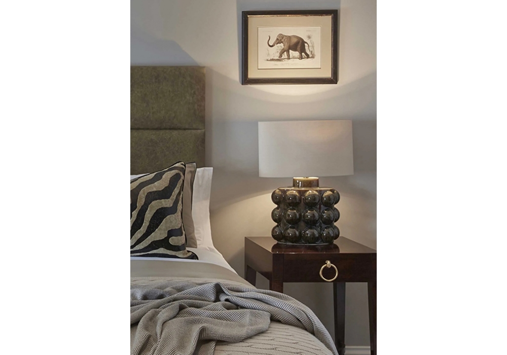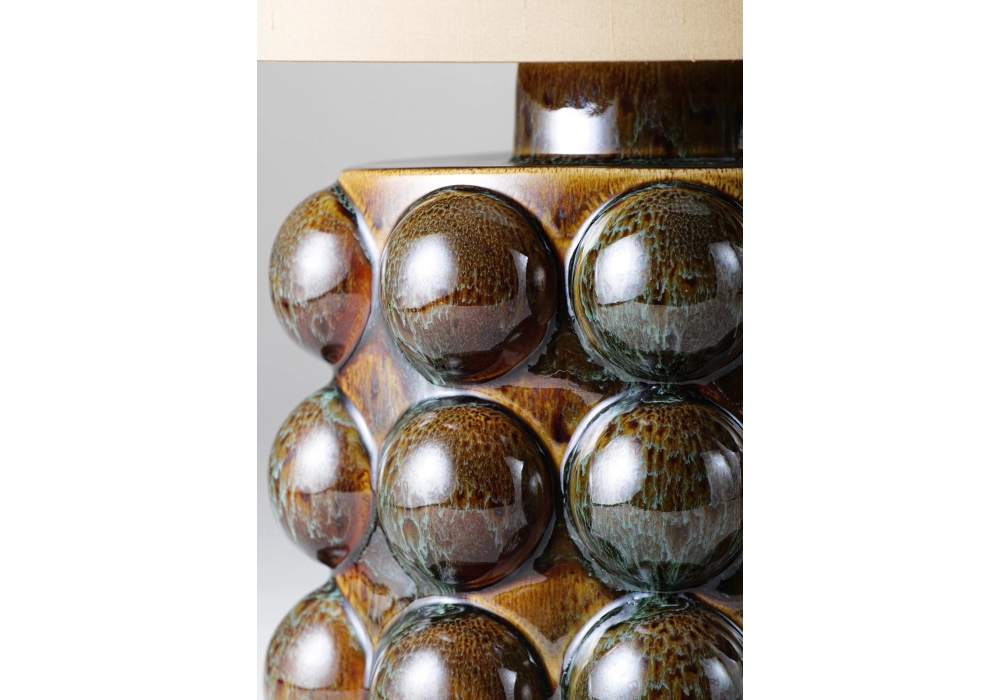 Bouble firmata e prodotta da Porta Romana è una lampada da tavolo strutturata in ceramica smaltata e ottone patinato. Il paralume è in tessuto e scherma una sorgente luminosa con innesto E27 di tipo LED. Bouble è disponibile in differenti finiture per ogni singolo elemento.