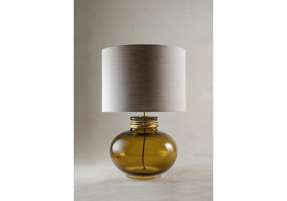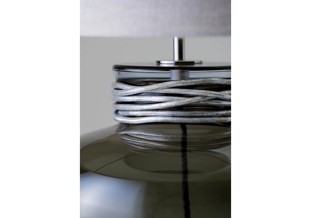 Boudica firmata e prodotta da Porta Romana è una lampada da tavolo strutturata in vetro soffiato a rifinita con particolari in metallo verniciato. il paralume è in tessuto e scherma una sorgente luminosa con innesto E27 di tipo LED. Boudica è disponibile in differenti finiture per ogni singolo elemento.