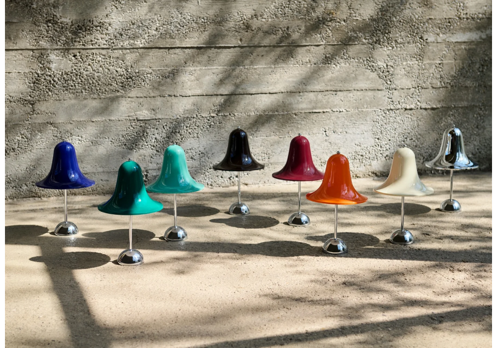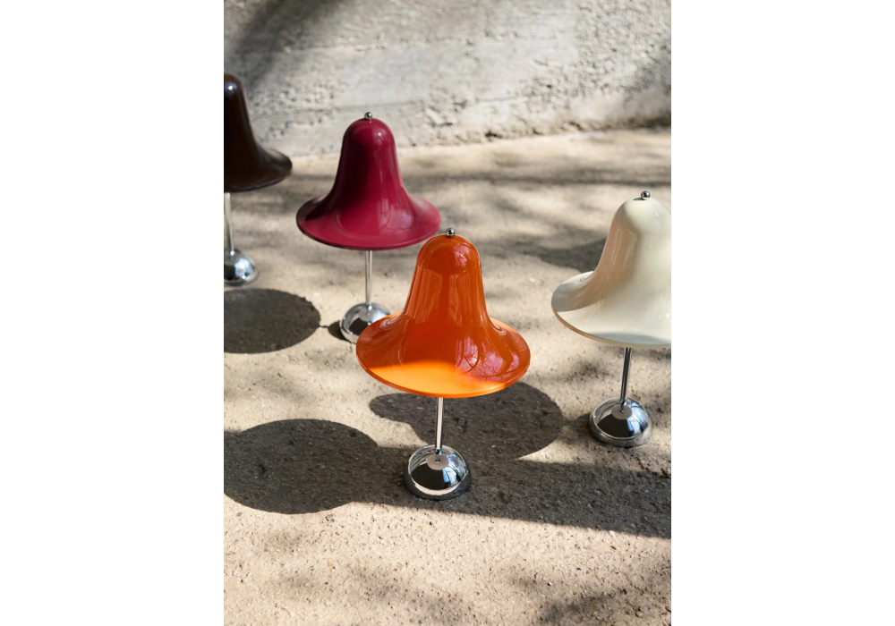 Pantop Portable firmata da Verner Panton per Verpan è una lampada da tavolo portatile LED con paralume a campaana con base, stelo e paralume in policarbonato verniciato e parte superiore in metallo spazzolato. Il dimmer a tre stadi consente di regolare il livello di luce in base all'atmosfera e all'impostazione desiderate. Cavo di ricarica micro USB da 200 cm 5.0 1A. Autonomia della batteria 7 ore. Disponibile in differenti finiture.