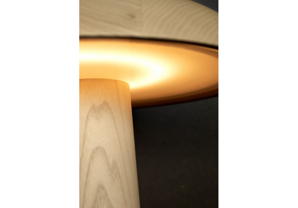 Forma firmata da Christian Haas per ClassiCon è una lampada da tavolo realizzata con base e paralume in massello di frassino, naturale con vernice trasparente o laccato nero, oppure in massello di noce, naturale, con vernice trasparente. Pannello diffusore in vetro satinato.