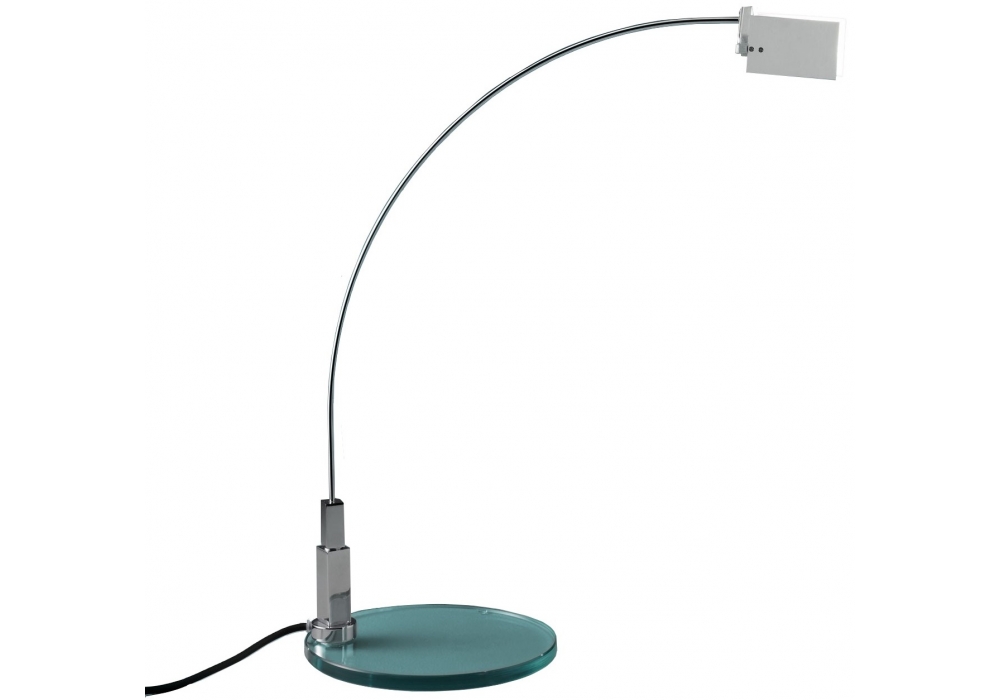 Falena firmata d Alvaro Siza per Fontana Arte è una lampada da tavolo a luce direzionabile a doppia intensità non dimmerabile con struttura in metallo cromato con base in vetro flot molato e corpo orientabile a 360°. Alette diffusori, orientabili, in alluminio anodizzato. Schermo di protezione lampadina in vetro sabbiato. Il collegamento elettrico fra lo stelo e il corpo avviene tramite jack. Cavo di alimentazione, dimmer e spina neri.