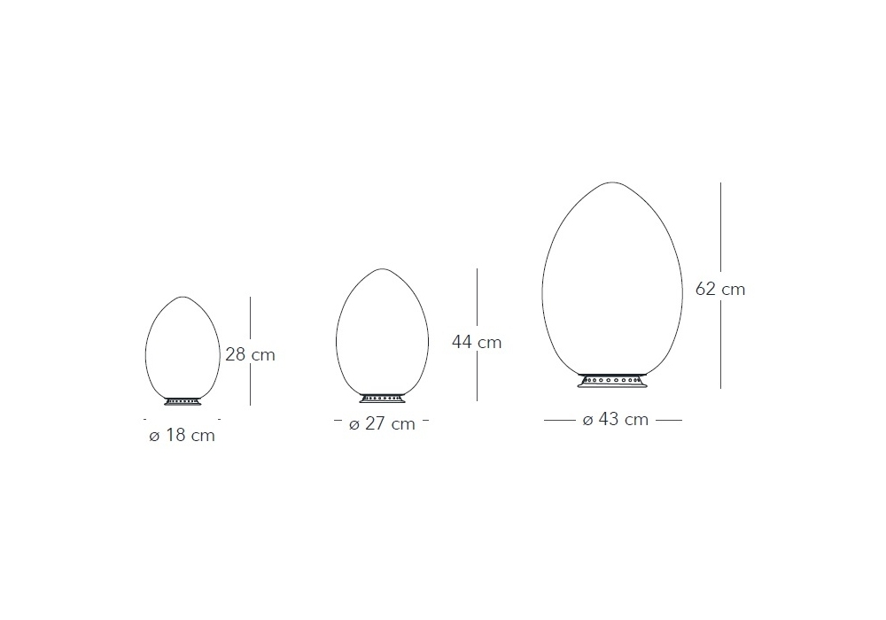 | Dimensioni | Ø 18 x H 28 cm; Ø 27 x H 44 cm; Ø 43 x H 62 cm. |