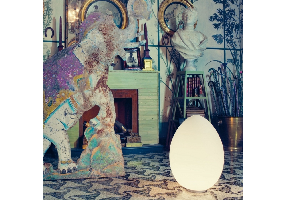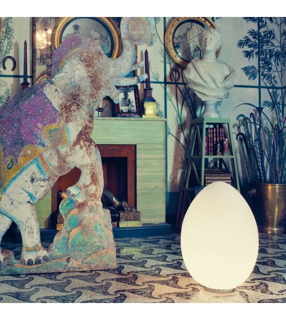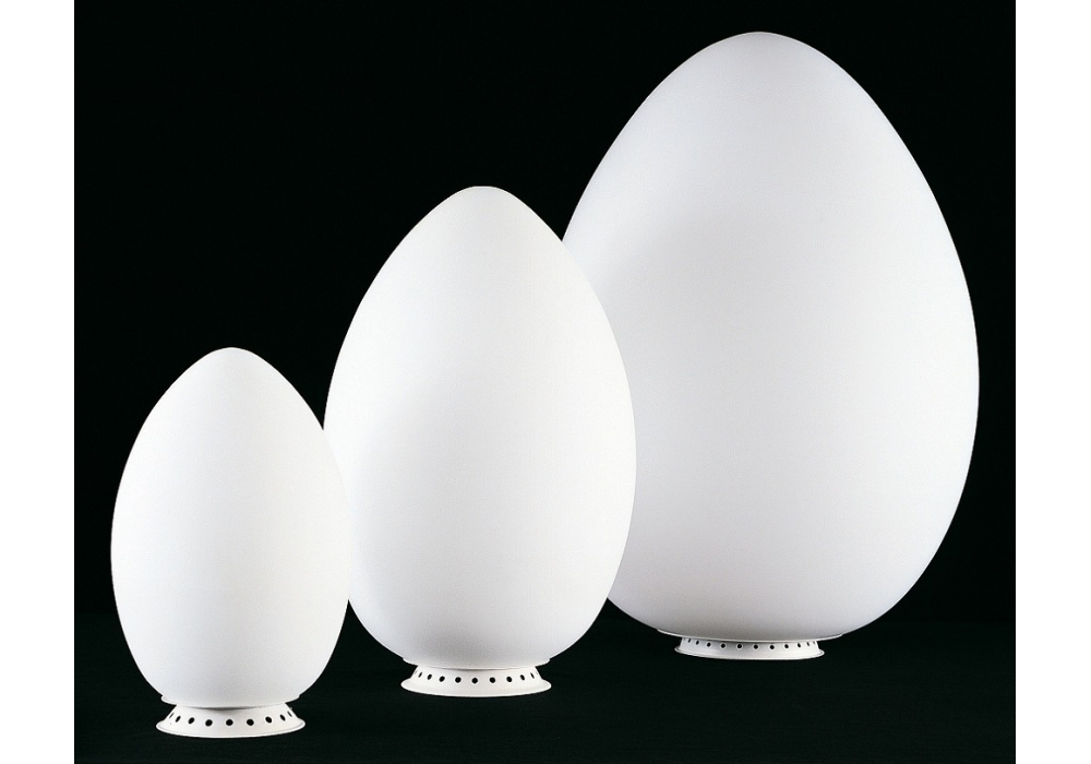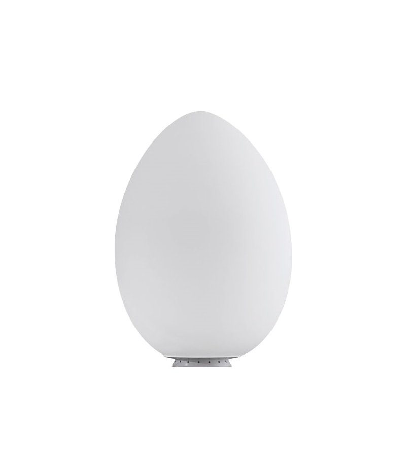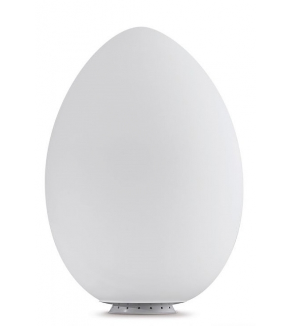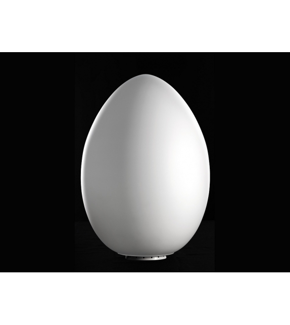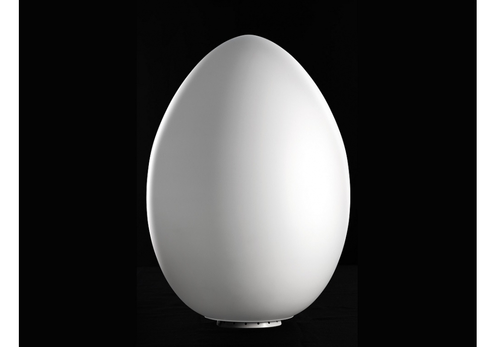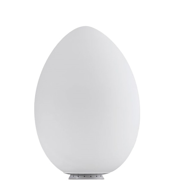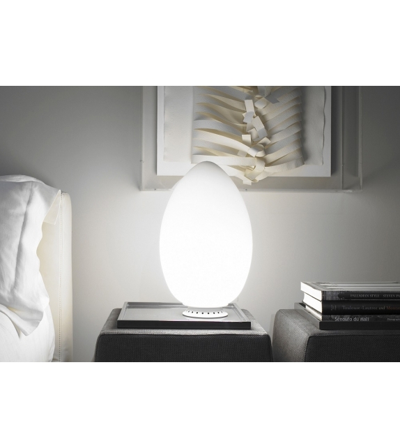 Uovo firmato da Ben Swildens per Fontana Arte è una lampada da tavolo a luce diffusa con diffusore in vetro soffiato satinato bianco. e base in metallo verniciato bianco. Cavo di alimentazione, interrutore e spina nero. Disponibile in differenti dimensioni.