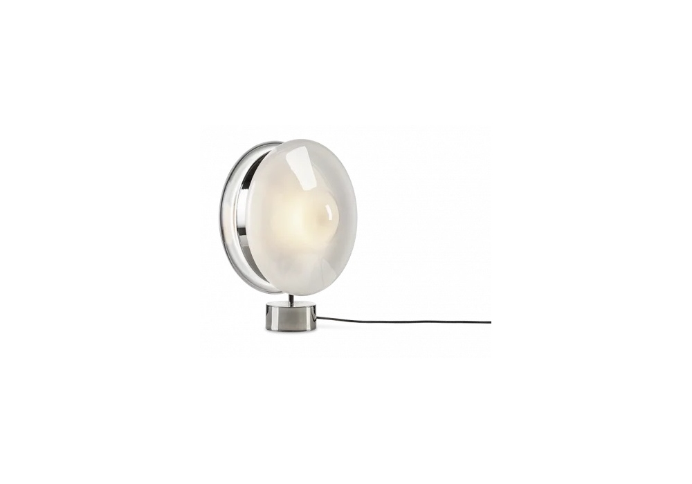Orbital firmata da Studio deFORM per Bomma è una lampada da tavolo con diffusore in cristallo soffiato a bocca. È disponibile in diverse finiture.
