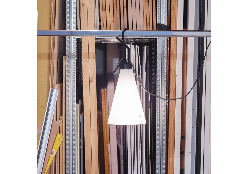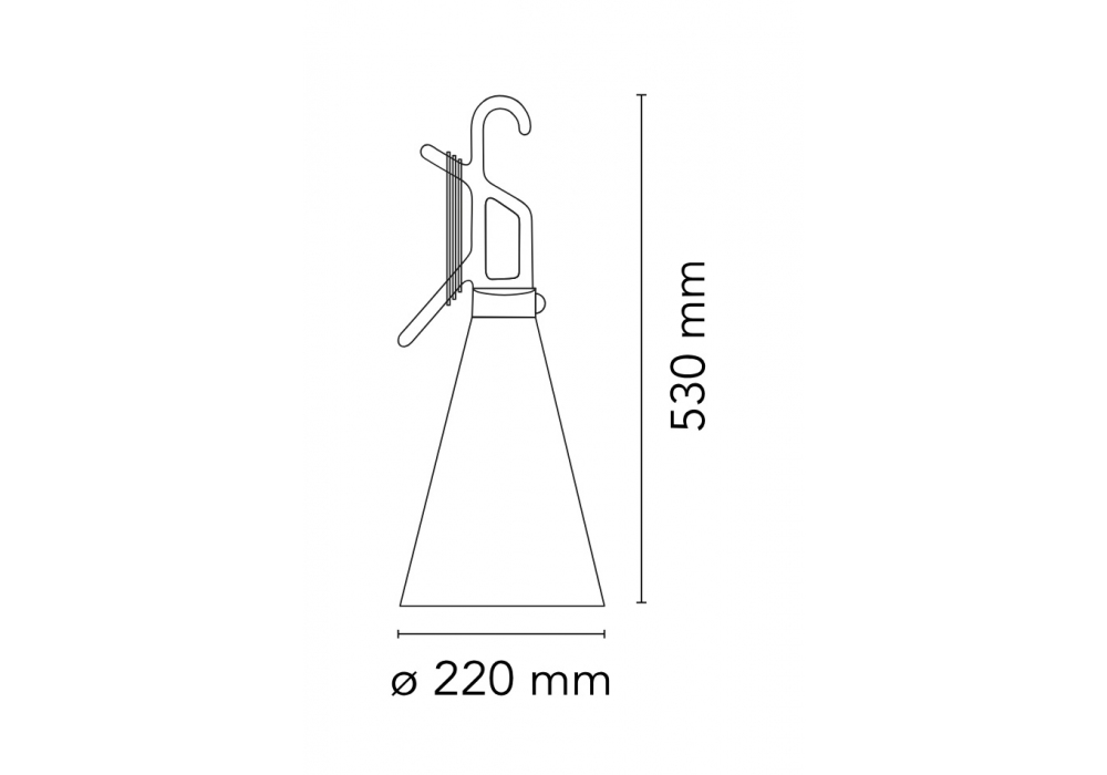 Mayday firmata da Konstantin Grcic per Flos è una lampada con corpo lampada/diffusore conico in polipropilene opalino stampato ad iniezione. Gancio/maniglia avente anche la funzione di avvolgicavo sempre in polipropilene ad alta resistenza. La sorgente luminosa adottata è di tipo LED con switch on/off su cavo di alimentazione. Lampadina esclusa.