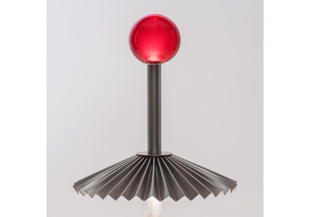 Etoile firmata da Daniela Puppa per Firmamento Milano è una lampada da tavolo a luce indiretta a batterie ricaricabile. Struttura in alluminio verniciato e pomolo in vetro soffiato. Disponibile in diverse finiture.