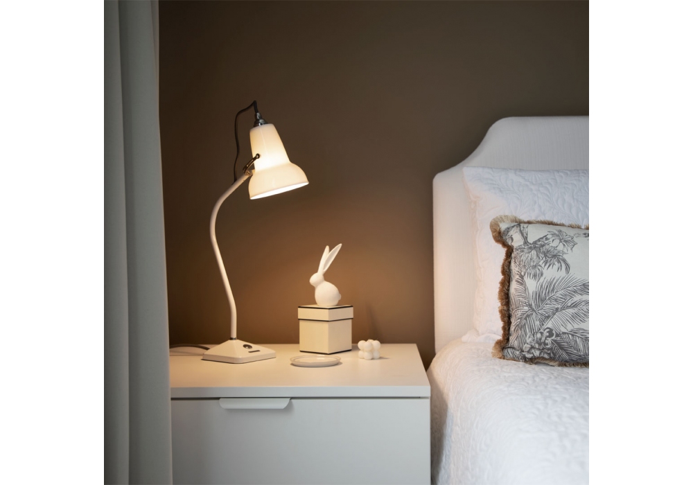 Original 1227 Mini firmata da George Carwardine per Anglepoise è una lampada da tavolo con bracci e paralume realizzati in alluminio in diverse finiture o nella versione "Pure White" con paralume in ceramica. Componenti in acciaio inossidabile.
