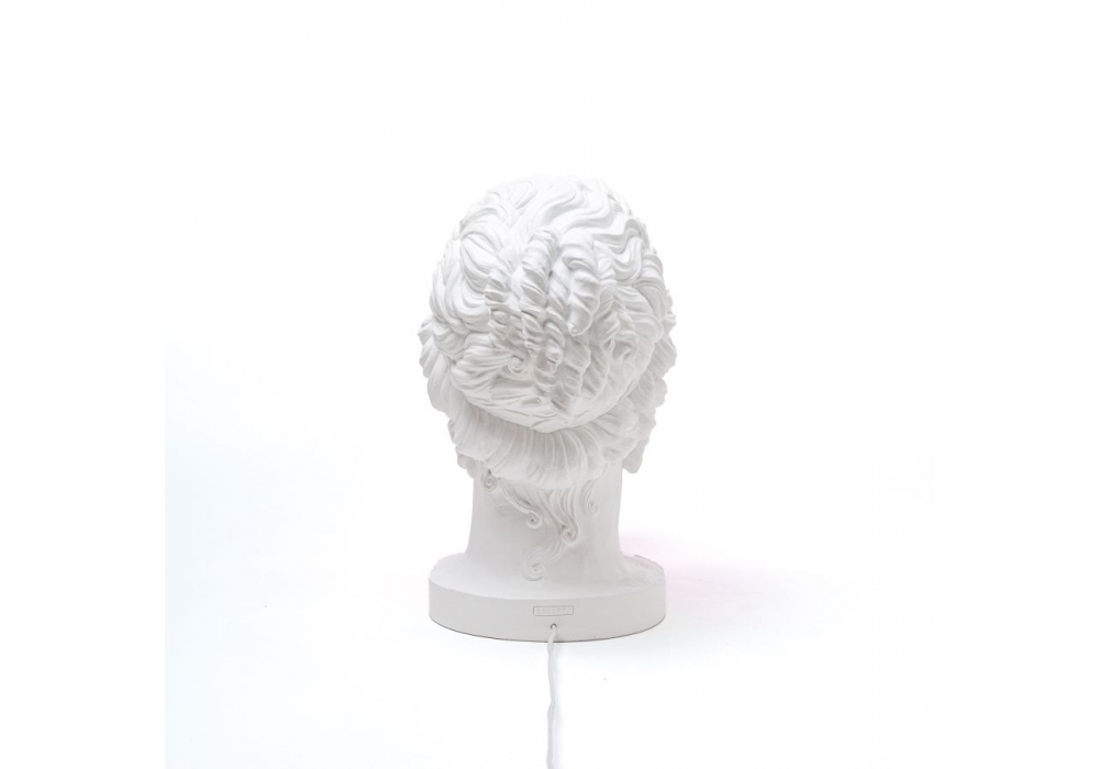 Grace firmata da Uto Balmoral per Seletti è una lampada da tavolo che rappresenta una testa umana in resina di colore bianco. Il diffusore è in vetro di forma sferica ed adotta una sorgente luminosa di tipo LED.
