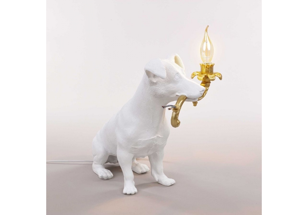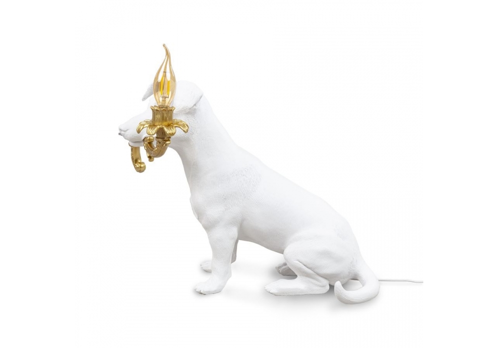 Rio firmata da Marcantonio per Seletti è una lampada in resina di colore bianco con particolari color oro con sorgente luminosa di tipo LED.