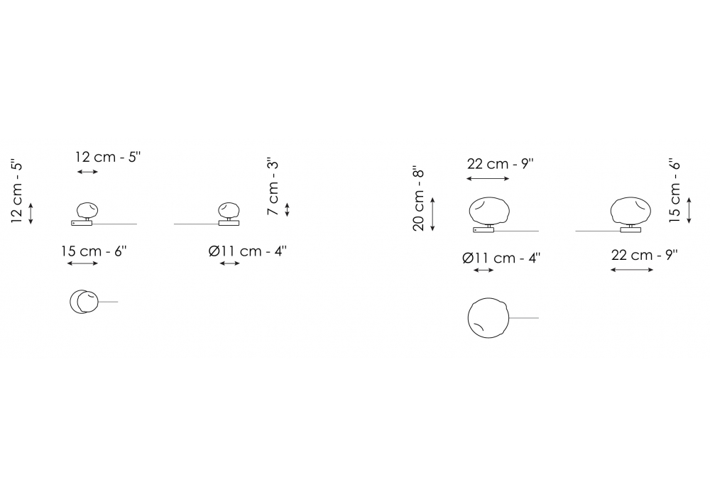 | Dimensioni | • Ø 12 x H 12 cm; • Ø 22 x H 20 cm |