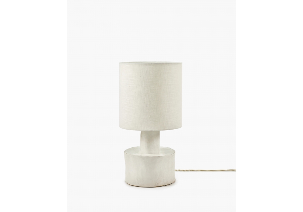 Catherine firmata da Marie Michielssen per Serax è una lampada da tavolo, con base cilindrica in gres e paralume circolare di colore bianco. Catherine una sorgente luminosa LED o alogena non dimmerabile con innesto E27. Catherine è disponibile in differenti finiture.