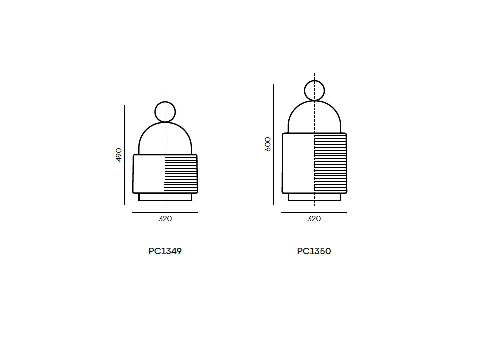 | Dimensioni | Ø 32 x H 49 cm; Ø 32 x H 60 cm. |