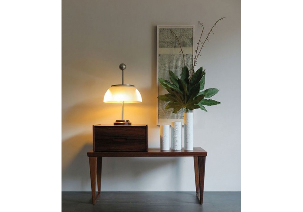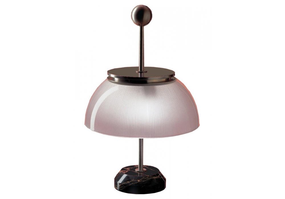 Alfa firmata da Sergio Mazza per Artemide è una lampada da tavolo realizzata con base circolare in marmo e asta verticale in acciaio nichelato opaco. Il diffusore è a cupola in cristallo e scherma delle sorgenti luminose di tipo LED dimmerabili.