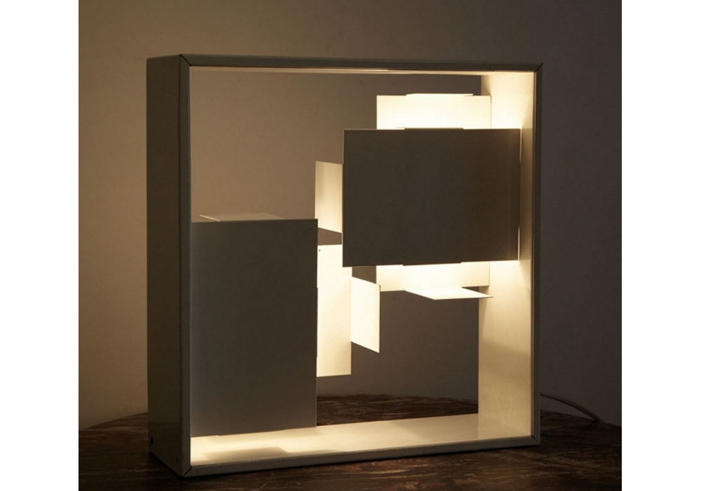 Fato firmata da Gio Ponti per Artemide è una lampada da tavolo o parete con struttura quadrangolare in acciaio verniciato. Le sorgenti luminose LED sono nascoste da delle placche metalliche in tinta con la struttura. Fato è disponibile in differenti finiture.