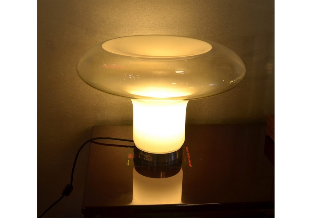 Lesbo firmata da Angelo Mangiarotti per Artemide è una lampada da tavolo con base circolare in alluminio lucidato. Il diffusore è in vetro soffiato di forma tondeggiante ed adotta una sorgente luminosa di tipo LED dimmerabile.