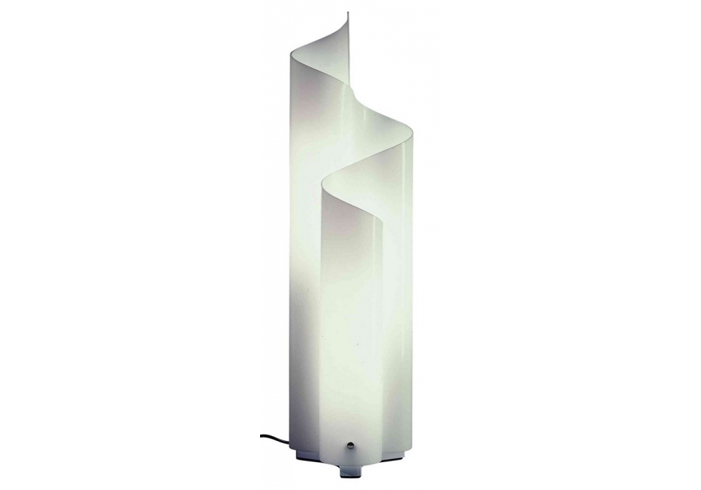 Mezzachimera firmata da Vico Magistretti per Artemide è una lampada da tavolo o terra con base in alluminio verniciato. La struttura/diffusore è in metacrilato opalino curvato a caldo e scherma delle sorgenti luminose di tipo LED.