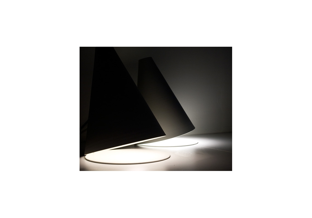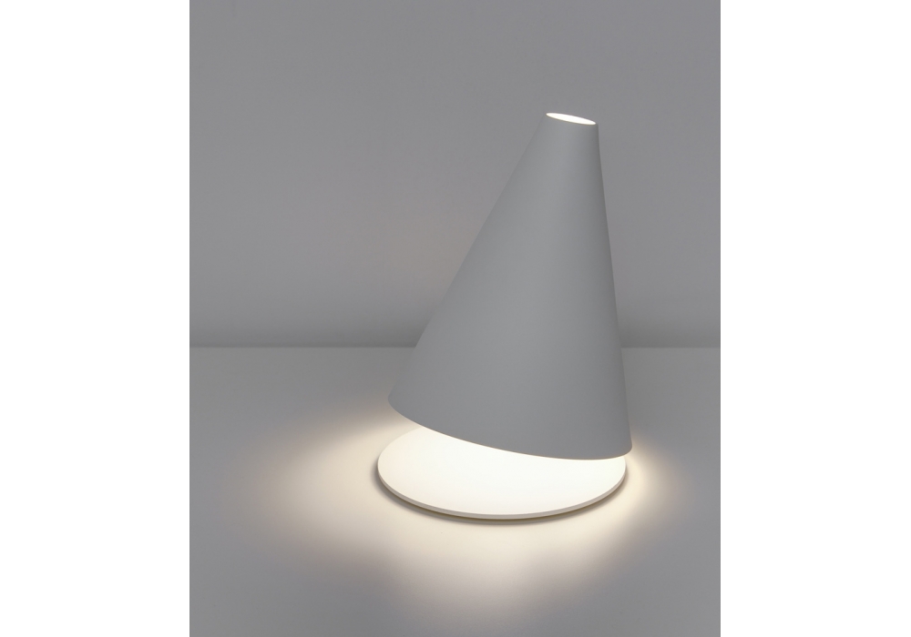 Palpebra firmata da Federico Delrosso per Davide Groppi è lampada da tavolo di forma conica interamente strutturata in metallo verniciato di bianco. La sorgente luminosa adottata è di tipo LED dimmerabile.