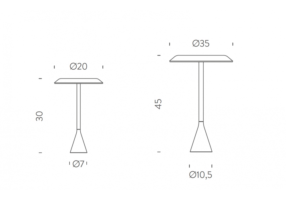 | Dimensioni | Ø 35 x H 45 cm; Ø 20 x H 30 cm. |