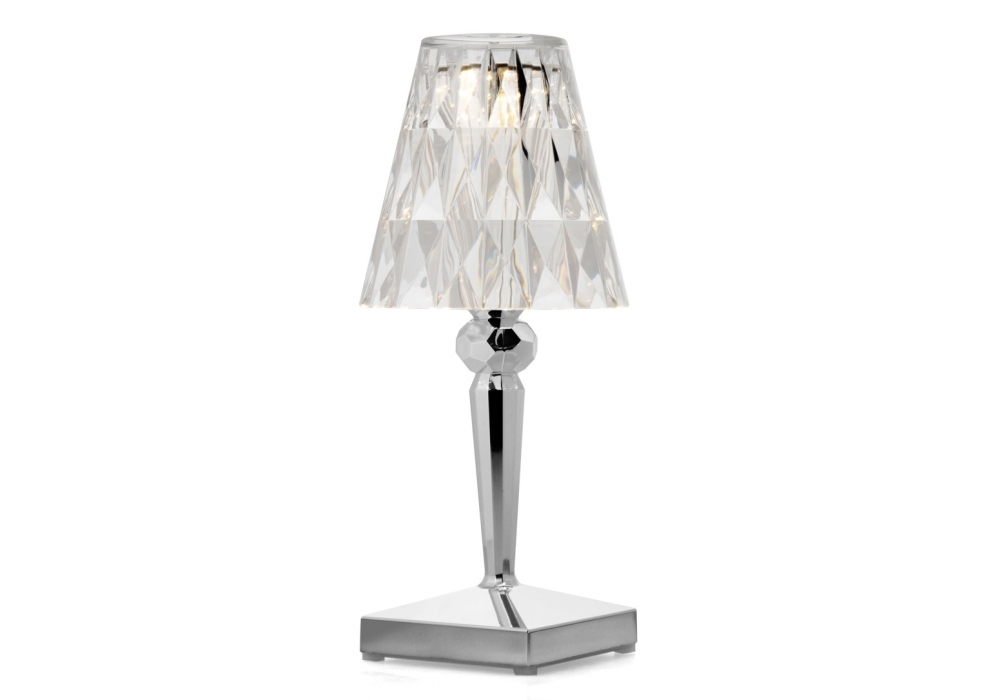 Battery firmata da Ferruccio Laviani per Kartell è una lampada da tavolo realizzata in PMMA trasparente, colorato in massa o metallizzato.