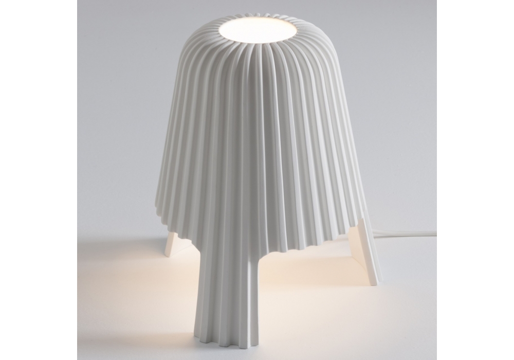 Silk firmata da Enrico Azzimonti per Bosa è una lampada da tavolo in ceramica con un plissè che dà forma ad una superficie finissima e ondeggiando come la seta nell'aria, genera l'anima della lampada Silk.