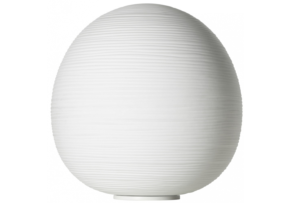 Rituals XL firmata da Ludovica + Roberto Palomba per Foscarini è una lampada da tavolo con struttura portante in metallo verniciato a tre piedi. Il diffusore è in vetro soffiato con superfice arricchita da incisioni circolari. La sorgente luminosa è con innesto E27 di tipo LED o alogena in versione dimmerabbile o on/off alimentata da un cavo in materiale plastico trasparente.