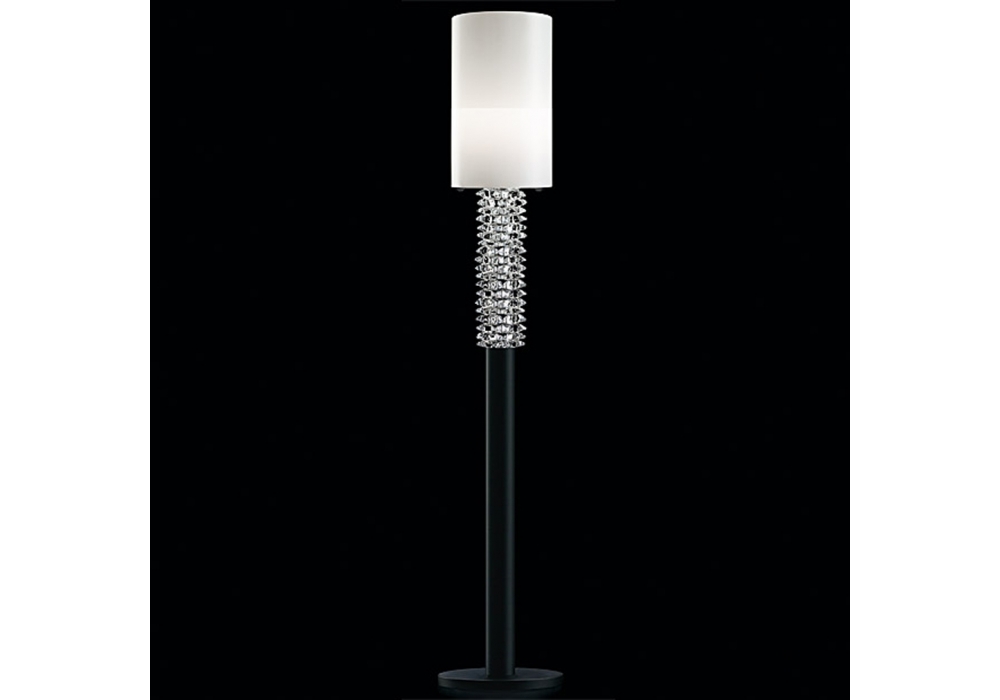 My Marylin firmata da Giorgia Brusemini per Barovier & Toso è una lampada da terra con base circolare e stelo tubolare in metallo verniciato di nero o mirra imprezziosito da rocchetti di cristallo. Il diffusore è di forma cilindrica in vetro veneziano bianco ed adotta una sorgente luminosa di tipo LED o alogena dimmerabile. My Marylin è disponibile in differenti dimensioni e finiture.